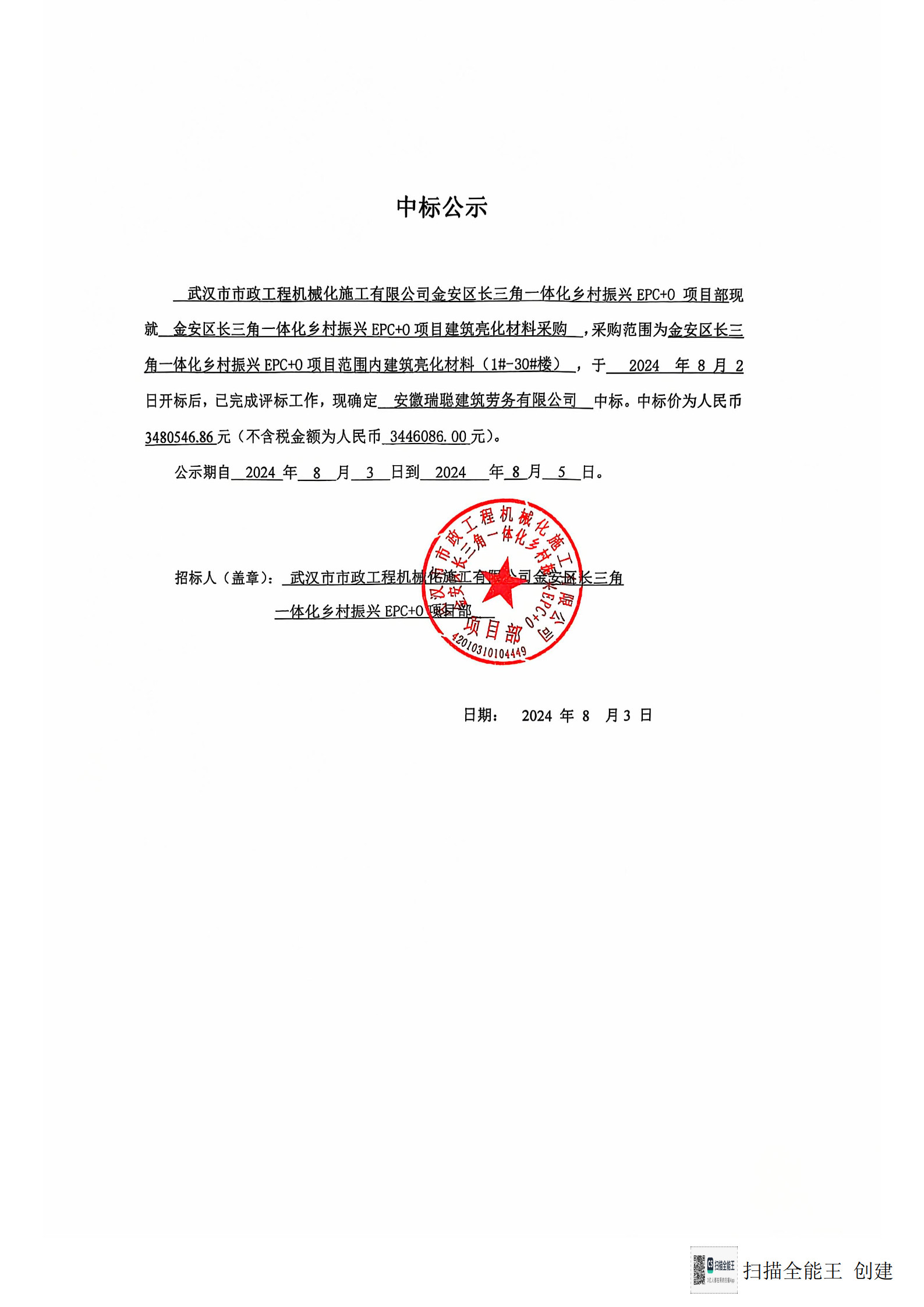 金安區長三角一體化鄉村振興EPC+O項目建筑亮化材料采購中標公示