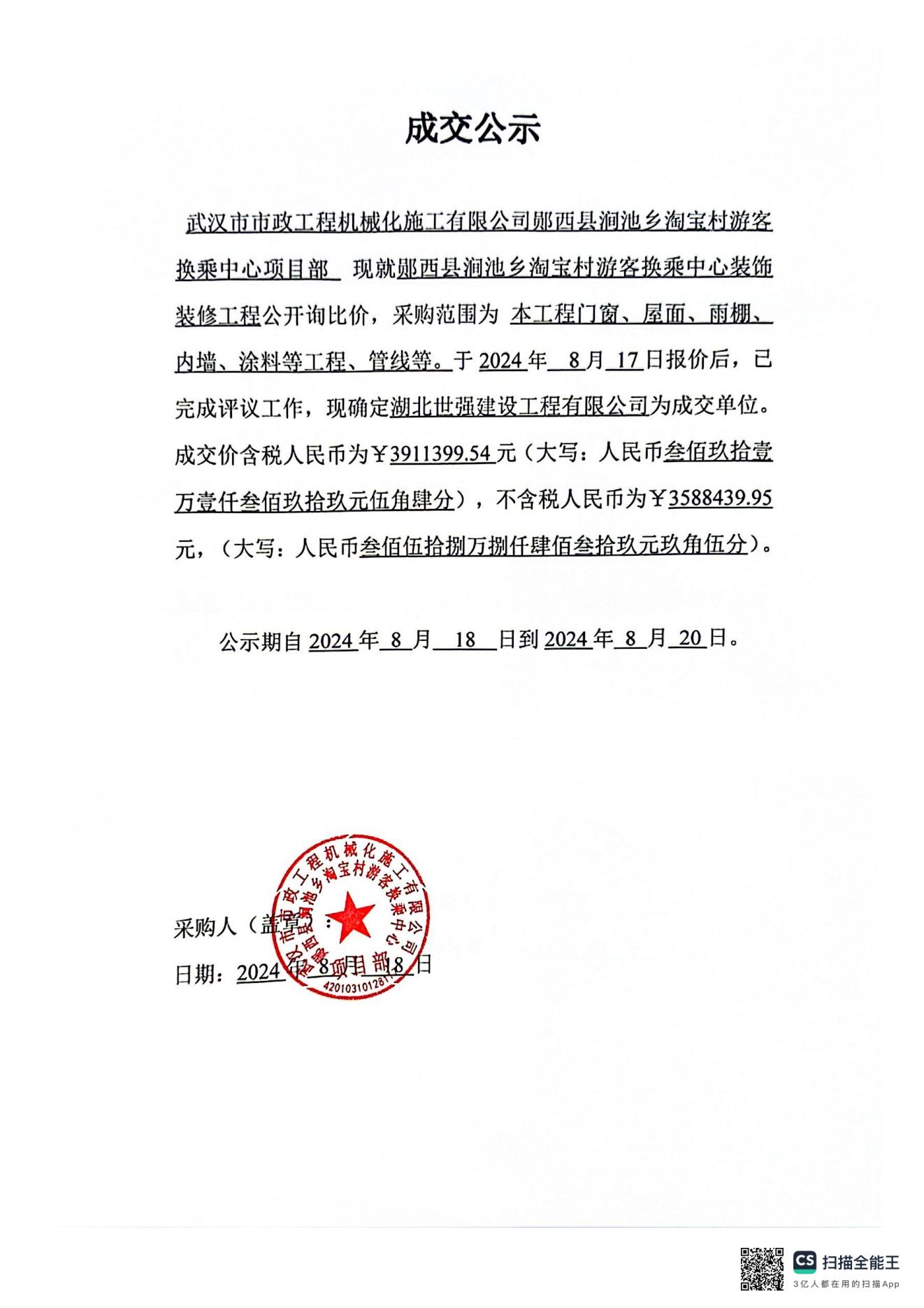 鄖西縣澗池鄉淘寶村游客換乘中心裝飾裝修工程中標公示